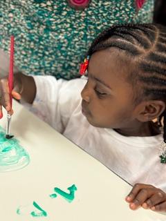 Nous avons écouté des histoires lues par Hélène, Marie et Mikaël, puis les enfants se sont essayés à la peinture.